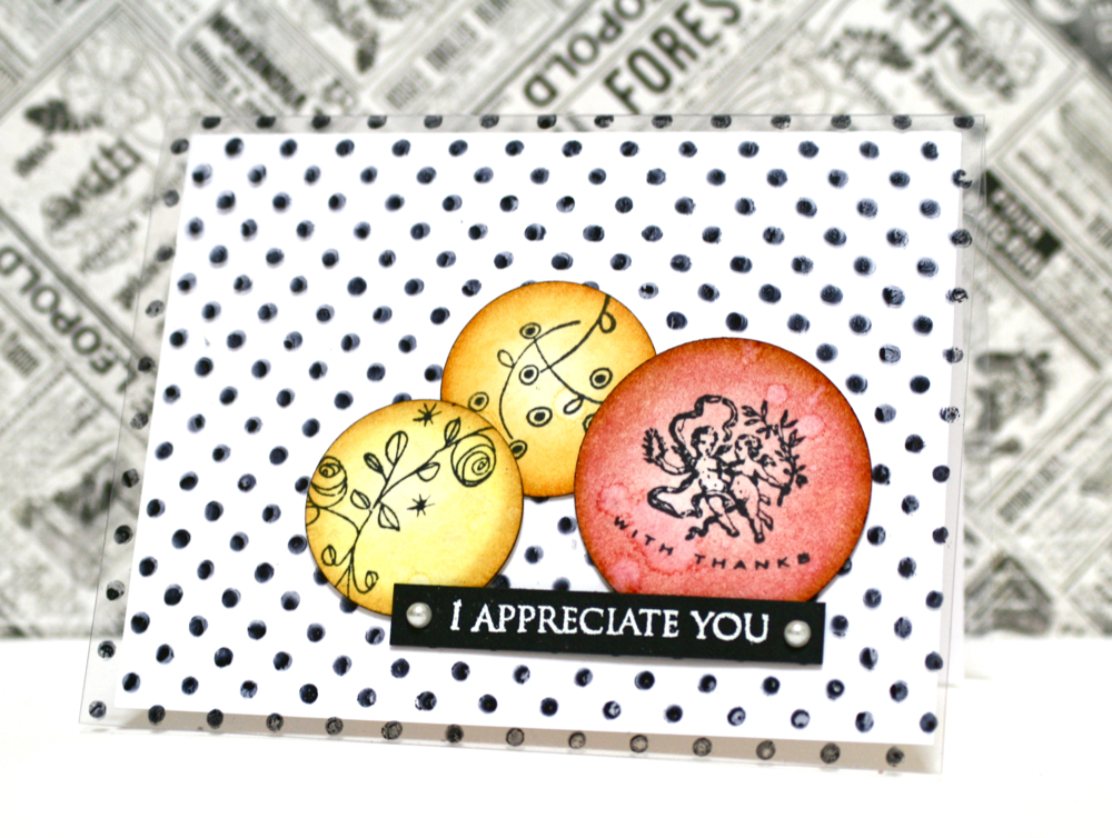 For this card, to make sure a recipient won't get pearlescent all over her hands, I spray water slightly.